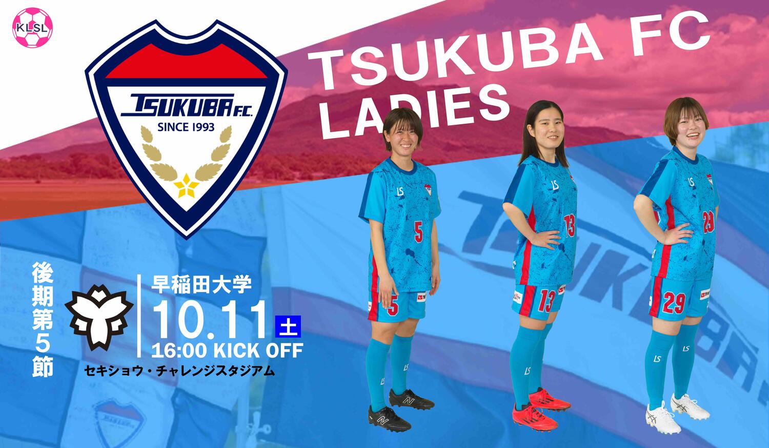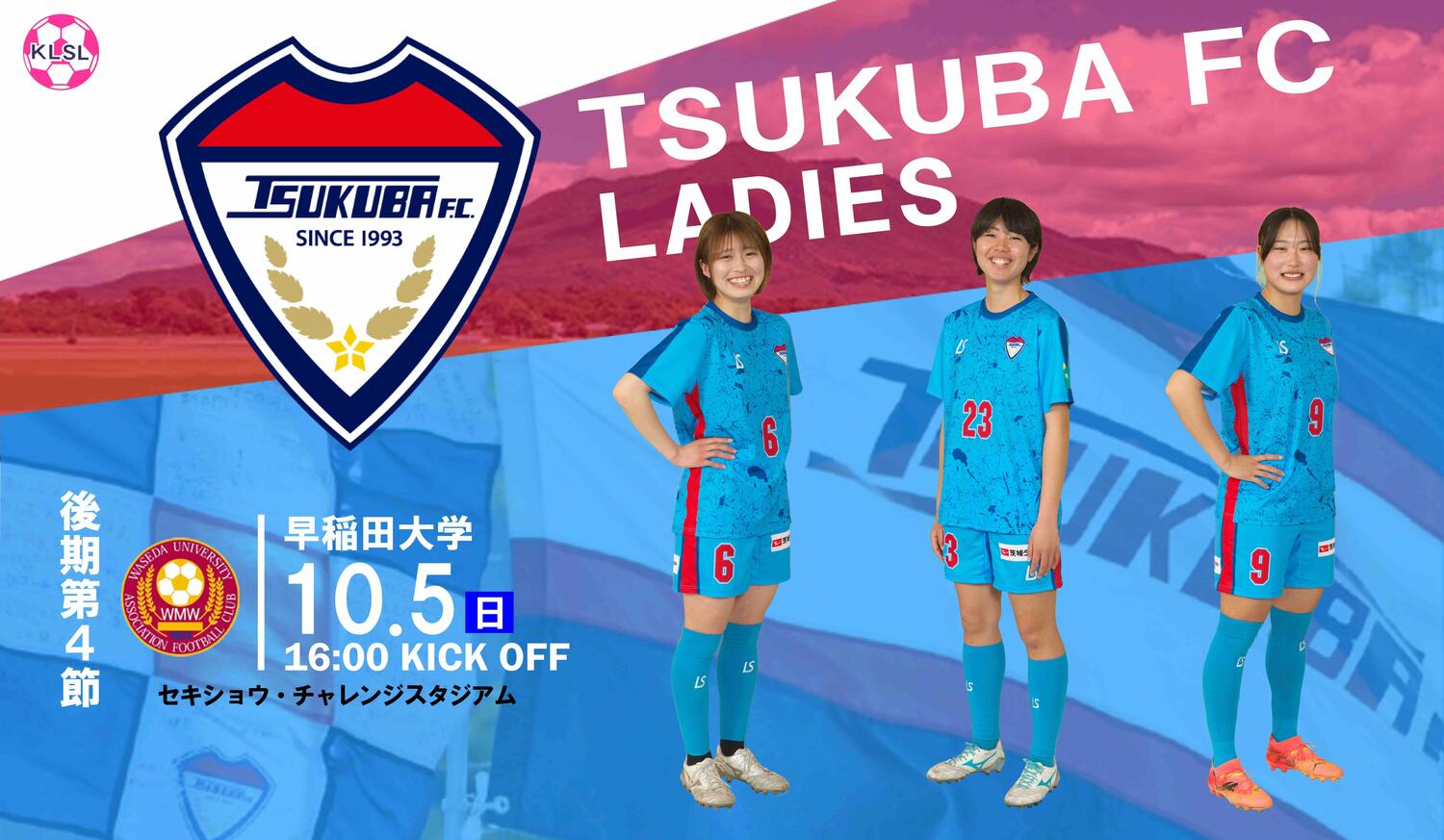 〈ホームゲーム情報・観戦案内〉10/5(日)つくばFCレディース vs 早稲田大学
