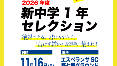 【セレクション】第2回・2026年度エスペランサSCジュニアユース新中学1年生セレクションのご案内