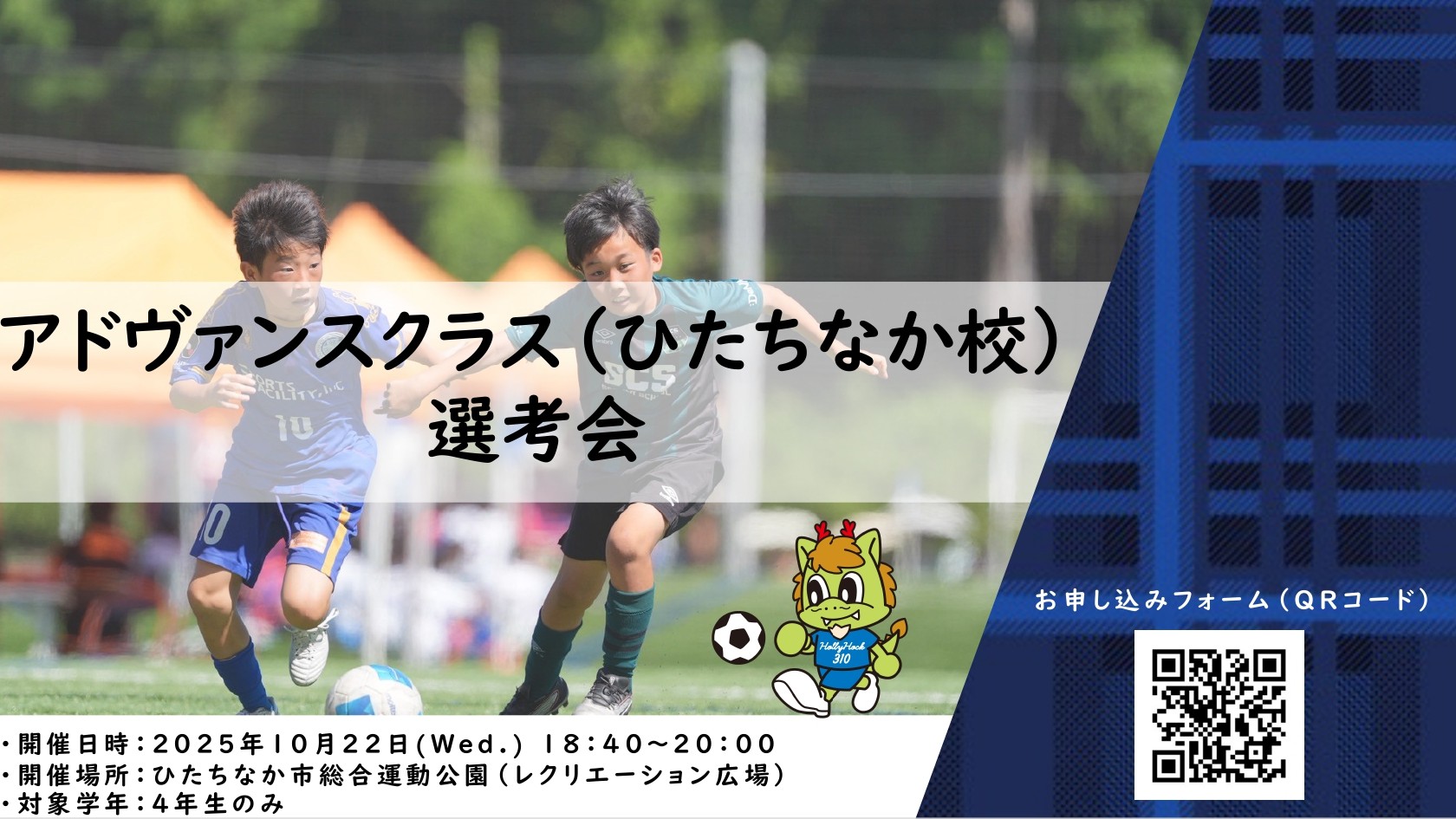 【10/22(水)開催】水戸ホーリーホックサッカースクール【ひたちなか校】アドヴァンスクラス選考会のご案内