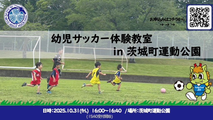 【10/31(金)】「幼児サッカー体験教室 in 茨城町運動公園」開催のお知らせ