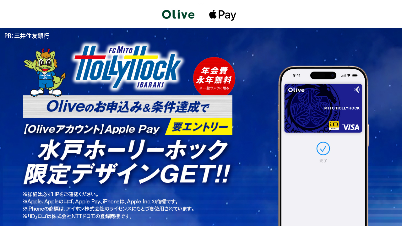 個人向け総合金融サービス「Olive」にApple Pay限定で水戸ホーリーホックデザインが登場!