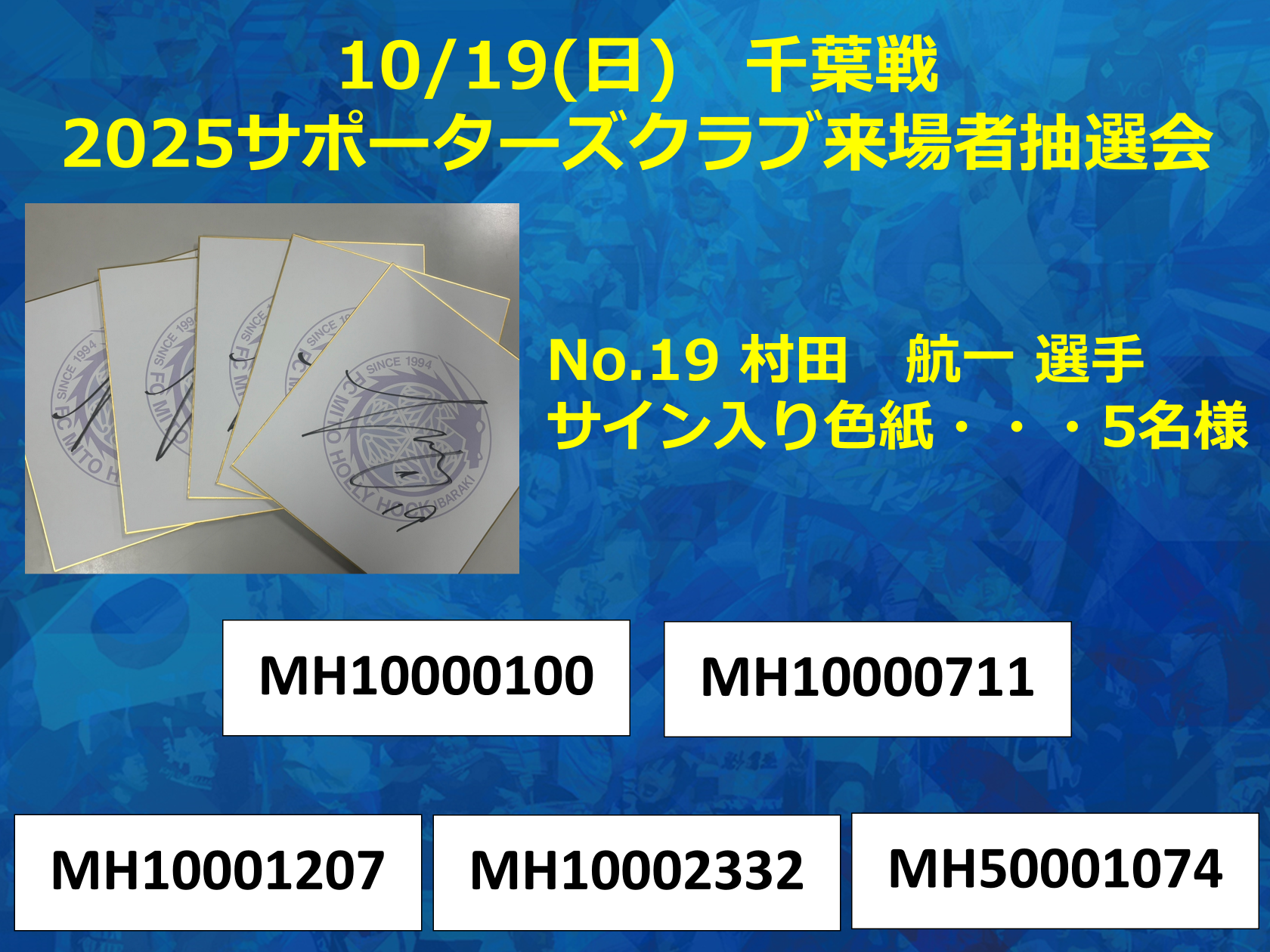 【10/19(日)千葉戦】2025サポーターズクラブ会員来場抽選会 当選者のお知らせ