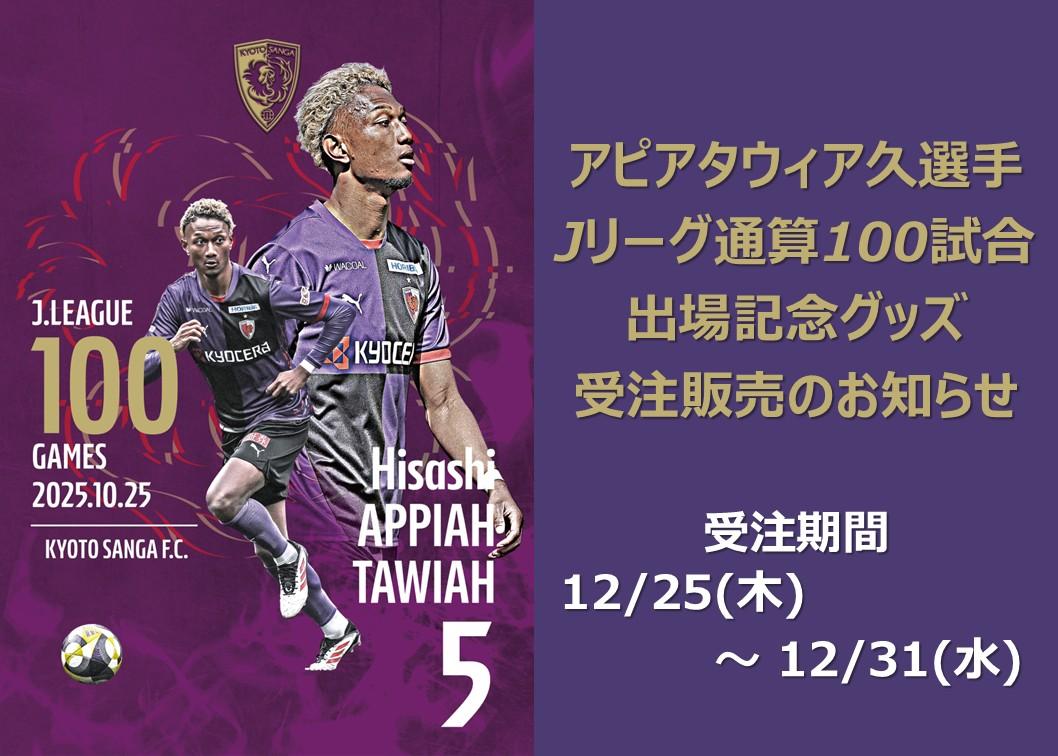 アピアタウィア久選手 Jリーグ通算100試合出場記念グッズ受注販売のお知らせ