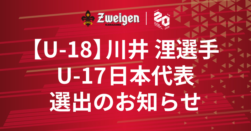 | 【ツエーゲン金沢】02-13 【U-18】川井 浬選手「U-17 日本代表 2月広島国際ユースサッカー」 メンバー追加選出のお知らせ | ![]() |