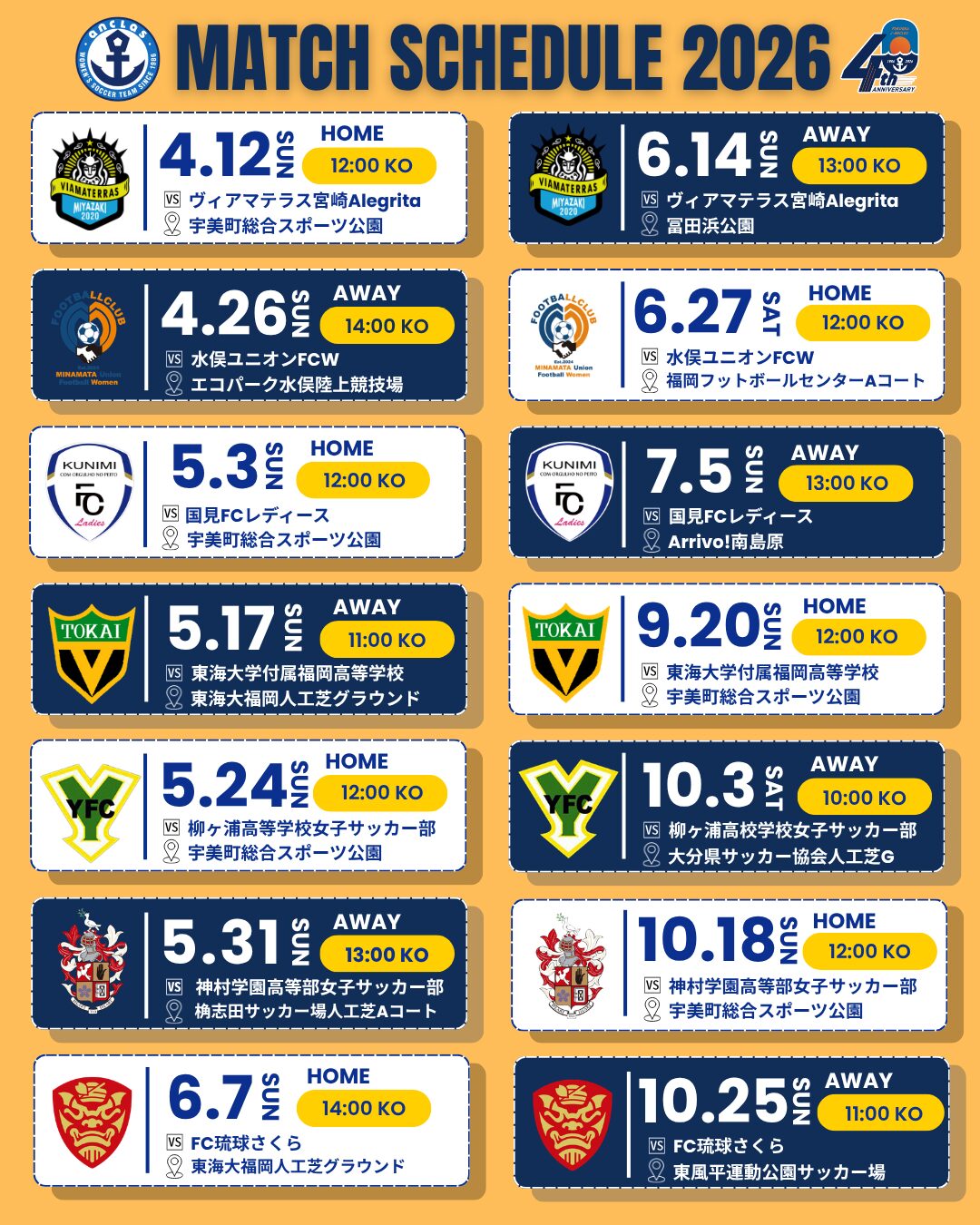 2026シーズン 試合日程のお知らせ
