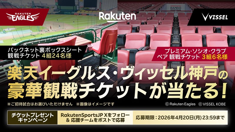 | 【ヴィッセル神戸】04-14 楽天グループ主催 Xチケットプレゼントキャンペーン開催のお知らせ | ![]() | ||