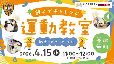 【4月15日(水)】★参加者募集★『S-PULSE親子でチャレンジ運動教室inキッズパーク てん』開催のお知らせ