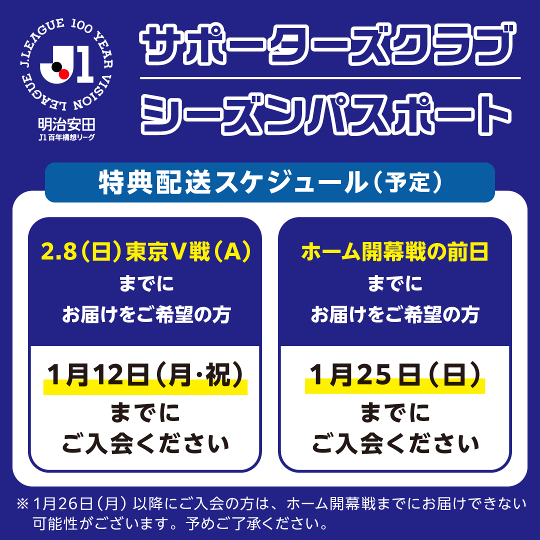【明治安田J1百年構想リーグ】サポーターズクラブの特典発送スケジュールについて