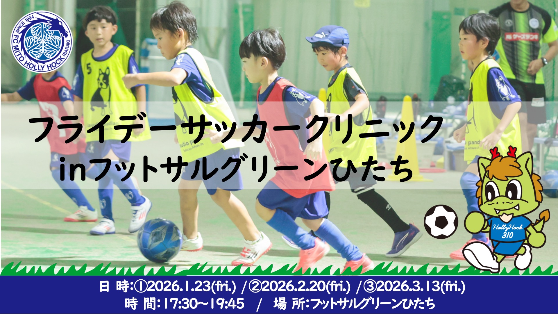 「水戸ホーリーホックフライデーサッカークリニックinフットサルグリーンひたち」開催のお知らせ