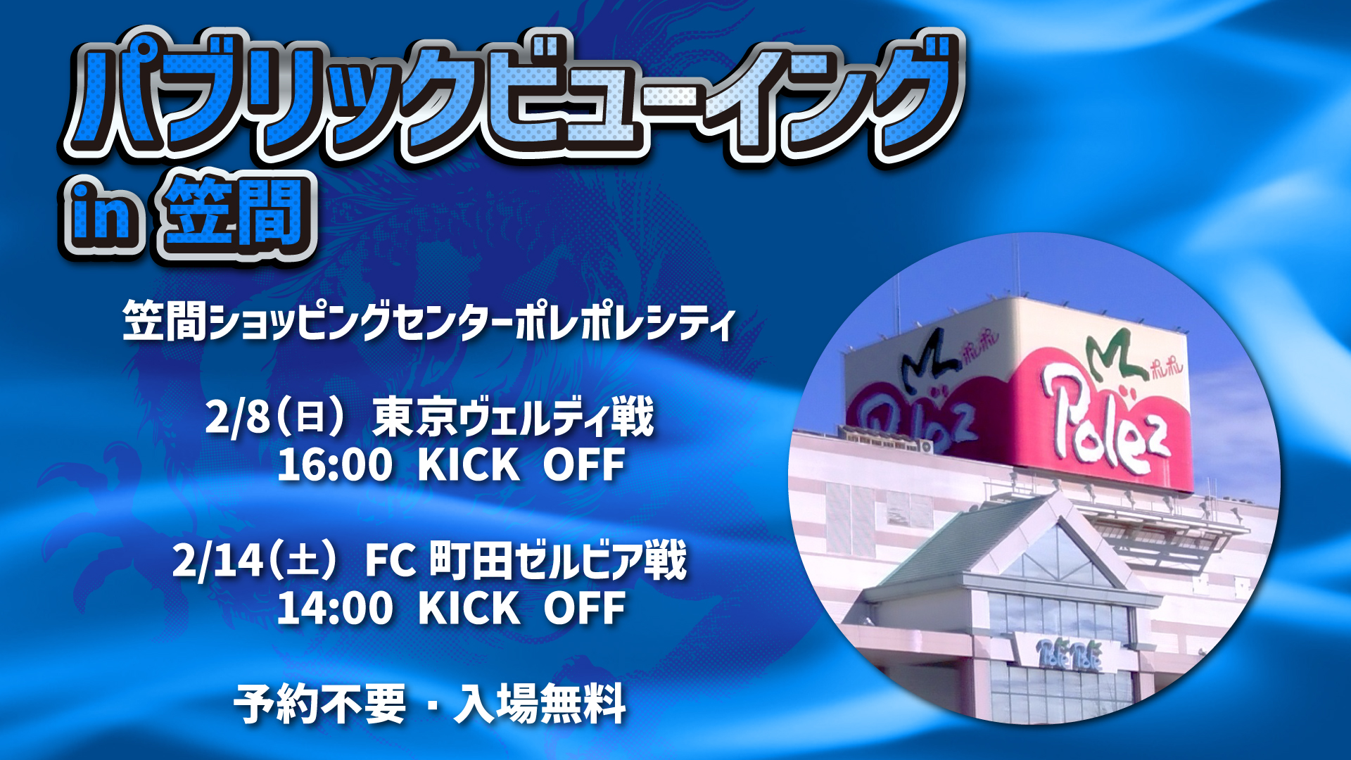 【2/8(日)東京V戦・2/14(土)町田戦】「笠間市パブリックビューイング」開催のお知らせ