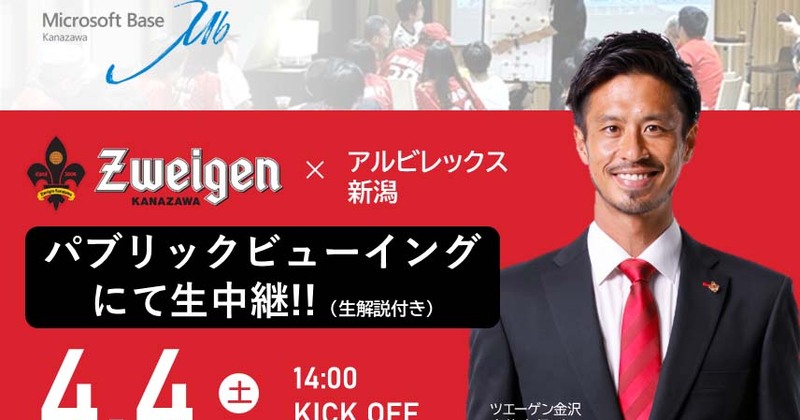 【4/4(土)アウェイ新潟戦】パブリックビューイング in マイクロソフトベース金沢 開催のお知らせ